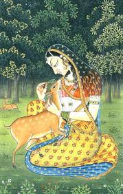 thinking of the young maid who gathered papaya in a grove by Kanva's ashram. She was so attached to the little fawn that he had gone after with his bow and arrow. He found himself drawn to her.